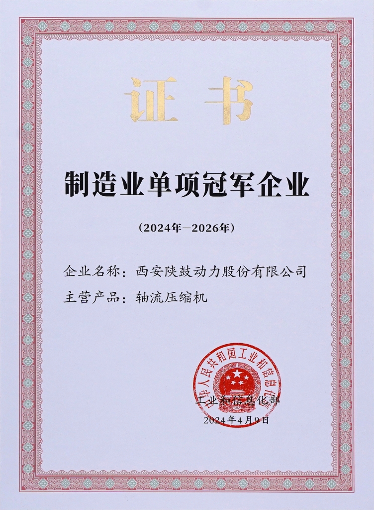• 2024-軸流壓縮機(jī)制造業(yè)單項(xiàng)冠軍企業(yè)(2024——2026)